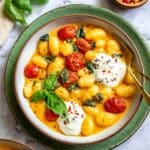 Keywords: creamy tomato gnocchi, burrata gnocchi, easy Italian dinner, cherry tomato sauce, potato gnocchi recipe, 30-minute meal