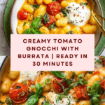 This 30 Minute Creamy Tomato Gnocchi with Burrata is a comforting and elegant dish that combines pillowy gnocchi with a rich tomato cream sauce and fresh burrata cheese. Perfect for a quick weeknight dinner or a special occasion, it’s simple to prepare yet feels decadent.
