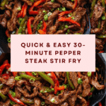 This 30-Minute Pepper Steak Stir Fry is a quick and flavorful dish perfect for busy weeknights. Tender strips of flank steak combine with colorful bell peppers in a savory, slightly sweet sauce that’s sure to please the whole family.