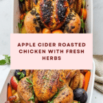 Keywords: Apple Cider Roasted Chicken, roasted chicken recipe, apple and herb chicken, fall chicken recipe, oven roasted chicken