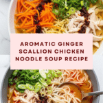 This Aromatic Ginger Scallion Chicken Noodle Soup is a comforting bowl full of tender chicken, delicate ginger, and fresh scallions. Enhanced by a tangy soy-vinegar sauce and a touch of chili oil, it’s a perfect balance of flavors to warm you up any day.