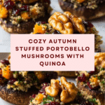 This Autumn Harvest Stuffed Portobello Mushrooms recipe features large portobello mushrooms filled with a flavorful mixture of quinoa, roasted butternut squash, dried cranberries, walnuts, garlic, and fresh thyme. Topped with parmesan cheese and baked to perfection, this dish is a hearty and wholesome vegetarian option perfect for fall or any time you crave a comforting, nutrient-packed meal.