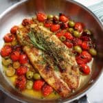 Searing gives the fish a nice flavor and texture, but if you’re short on time, you can skip this step and bake the fish directly with the tomato and olive mixture—just add a few extra minutes to the baking time.