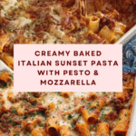Baked Italian Sunset Pasta is a comforting, layered pasta dish featuring mezzi rigatoni tossed in a savory meat sauce, topped with fresh mozzarella, pesto, and Parmesan cheese. Baked until golden and bubbly, this recipe brings a flavorful Italian-inspired casserole perfect for family dinners or special gatherings.