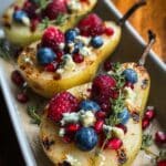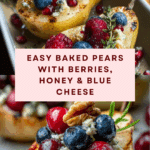 Baked pears with berries, honey, walnuts, and blue cheese make a delightful warm dessert or elegant appetizer. This dish combines sweet, tart, and savory flavors with a lovely blend of textures that’s sure to impress. It’s easy to prepare and perfect for cozy gatherings or special occasions.