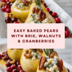 Keywords: baked pears, brie cheese, walnuts, cranberries, dessert, easy baked fruit, fall dessert, holiday appetizer