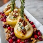 Baked pears with Brie, walnuts, and cranberries make a delightful combination of sweet and savory flavors. This easy-to-make dish is perfect as an appetizer or a comforting dessert. The warm, melty cheese pairs beautifully with the tender fruit and crunchy nuts.