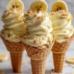 Keywords: banana pudding, cheesecake cones, no bake dessert, waffle cones, easy dessert, creamy banana dessert