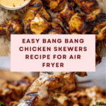 Delicious and spicy Bang Bang Chicken Skewers made with tender boneless chicken breasts marinated in a flavorful blend of spices and coated with a creamy, sweet, and spicy bang bang sauce. Cooked to perfection in an air fryer for a crispy exterior and juicy interior, these skewers are perfect as a quick appetizer or a tasty main dish.