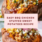 Keywords: BBQ chicken, stuffed sweet potatoes, baked sweet potatoes, barbecue chicken recipe, healthy dinner, easy weeknight meal, gluten-free dinner