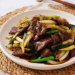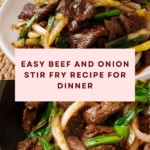 This Beef and Onion Stir Fry is a quick and flavorful dish featuring tender beef slices marinated in a savory ginger-soy mixture, stir-fried with sweet onions and spring onions in a rich oyster sauce. Perfect for a weeknight dinner, it combines tender steak cuts with aromatic garlic, ginger, and a balanced blend of soy and oyster sauces to deliver a satisfying meal that’s both easy to prepare and full of umami flavor.