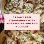 Keywords: Beef Stroganoff, creamy beef recipe, mushroom sauce, quick dinner, classic Russian dish, stroganoff with beef, dinner with egg noodles