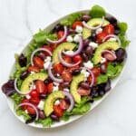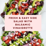 Keywords: side salad, simple salad, balsamic vinaigrette, mediterranean salad, mixed greens salad, easy salad recipe