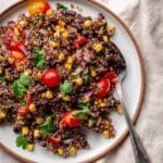 A vibrant and healthy Black Bean Quinoa Corn Salad that combines protein-packed quinoa, black beans, sweet corn, and fresh vegetables with a zesty lime and cumin dressing. Perfect as a light lunch, side dish, or vegetarian meal, this salad is refreshing, nutritious, and easy to prepare.