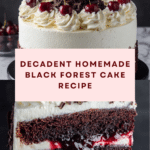 Keywords: Black Forest cake, chocolate cherry cake, whipped cream cake, German dessert, cherry filling, chocolate cake recipe