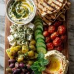 If baba ghanoush isn’t available, substitute with additional hummus or another creamy dip like a roasted red pepper dip. This keeps the board varied and flavorful.