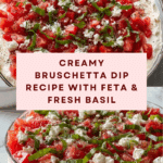 Keywords: bruschetta dip, Italian appetizer, tomato dip, feta cheese dip, party appetizer, no-cook dip, creamy dip, basil dip