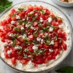 This Bruschetta Dip is a vibrant and flavorful appetizer that combines fresh, marinated Roma tomatoes with a creamy cheese base made from feta, cream cheese, and sour cream. Enhanced with fragrant basil, garlic, and a touch of balsamic vinegar, this layered dip offers a perfect balance of tangy, savory, and fresh flavors, ideal for parties or casual gatherings to delight your guests.
