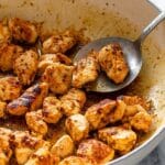 2. Cook the Chicken: Heat a large, high-sided skillet or Dutch oven over medium heat. Add 2 tablespoons of olive oil when hot. Place the chicken in a single layer and cook without moving for 2 to 3 minutes until golden brown on one side. Continue sautéing and stirring occasionally for about 3 minutes until the chicken is fully cooked. Transfer the chicken to a clean bowl and cover to keep warm.