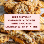 Caramel Kitchen Sink Cookies are a delightful mix of sweet, salty, and crunchy all in one bite. Packed with pretzels, potato chips, chocolate, toffee, and a gooey caramel center, these cookies offer a playful twist on classic chocolate chip cookies. Perfect for those who love a variety of textures and flavors in their treats.