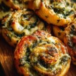 Cheese and Spinach Pinwheels are a delightful appetizer or snack featuring flaky puff pastry filled with a creamy spinach and cheese mixture. They bake up golden and gooey, perfect for parties or a comforting bite any time.