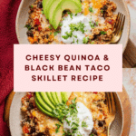 Keywords: quinoa black bean skillet, cheesy quinoa recipe, vegetarian taco skillet, easy weeknight dinner, meatless taco recipe