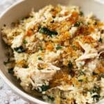 - Assemble Casserole: Transfer the chicken, rice, and kale mixture to a large baking dish and spread evenly. Spoon the breadcrumb mixture over the top, covering the casserole completely in an even layer.
