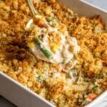 This comforting Chicken and Stuffing Casserole combines shredded chicken, creamy soup, and mixed vegetables topped with savory stove-top stuffing for a delicious, easy-to-make meal that’s perfect for family dinners or potlucks.