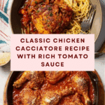 Keywords: Chicken Cacciatore, Italian chicken recipe, chicken stew, tomato chicken, classic Italian dish, chicken over pasta