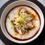 A comforting and traditional Chicken Congee recipe featuring tender shredded chicken, creamy rice porridge cooked in flavorful homemade chicken stock, and garnished with fresh ginger, spring onions, and a drizzle of soy sauce. Perfect for a warming meal any time of day.