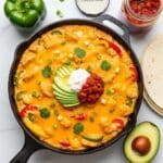 - Serve: Once baked, remove from the oven and serve hot. Optionally, garnish with slices of avocado, dollops of guacamole, extra sour cream, and your favorite salsa for added flavor and freshness.