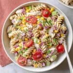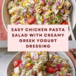 Keywords: chicken pasta salad, fusilli pasta salad, Greek yogurt dressing, cold pasta salad, healthy pasta salad