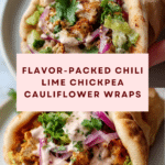 This Chili Lime Chickpea Cauliflower Wrap is a vibrant and flavorful vegetarian meal packed with spicy roasted cauliflower and zesty chickpeas. Topped with creamy avocado crema and fresh herbs, it’s perfect for a quick lunch or light dinner.