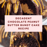 Keywords: Chocolate Peanut Butter Bundt Cake, peanut butter cake, chocolate cake, bundt cake recipe, chocolate ganache, peanut butter cream cheese filling, dessert, holiday cake