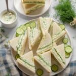 - Serve: Arrange the cucumber sandwiches on a serving dish. Optionally garnish with extra dill or additional cucumber slices for an attractive presentation.