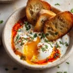 Keywords: Çılbır, Turkish eggs, poached eggs, herbed yogurt, Aleppo pepper, breakfast, Middle Eastern cuisine