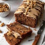 This Coffee and Walnut Loaf Cake is a moist, flavorful vegan treat combining rich coffee flavors with crunchy walnuts. Perfect for a cozy afternoon snack or a delightful dessert, this loaf is topped with a smooth coffee glaze and garnished with walnuts for added texture and taste.