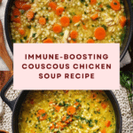 Keywords: couscous chicken soup, cold fighting soup, instant pot chicken soup, stovetop chicken soup, ginger turmeric soup, comforting chicken soup