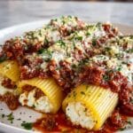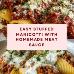 This comforting stuffed manicotti recipe features tender pasta shells filled with a creamy ricotta mixture and topped with a rich, easy meat sauce. Baked to bubbly perfection, it’s a satisfying meal perfect for family dinners or special occasions.