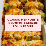 Country Cabbage Rolls are a comforting classic from a Mennonite kitchen, combining hearty ground beef with tender cabbage leaves wrapped around a flavorful rice mixture. This simple, homey dish bakes in a sweet and tangy tomato sauce, making it perfect for family dinners.