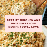 - Serve: Remove the casserole from the oven and let it cool slightly before serving. Enjoy this creamy, comforting chicken and rice casserole!