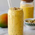 - Serve Immediately: Pour the mango smoothie into glasses and serve chilled. Optionally garnish with a pinch of ground cardamom or chopped pistachios for an aromatic and crunchy touch.