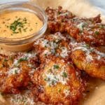 - Finish and serve: Garnish the potatoes with extra vegan parmesan and freshly chopped parsley. Serve hot with your favorite dips such as vegan mayonnaise or dairy-free yogurt for a perfect appetizer or side dish.