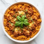This Crockpot Pizza Pasta is a delicious and easy one-pot meal combining all the comforting flavors of pizza with the convenience of slow cooking. Ground meat simmers with pizza sauce, Italian seasoning, and penne pasta in the crockpot, then finishes with melty mozzarella and pepperoni for a hearty, kid-friendly dinner perfect for busy weeknights.