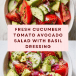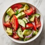 This refreshing cucumber, tomato, and avocado salad is a perfect way to enjoy fresh, vibrant flavors. Combining crisp vegetables with creamy avocado and a tangy dressing, it’s an easy dish that works great as a side or light meal.