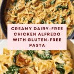This Dairy Free Chicken Alfredo recipe delivers a creamy, flavorful pasta dish without any dairy ingredients. Using gluten-free farfalle and dairy-free heavy cream and cheese substitutes, it’s perfect for those avoiding dairy and gluten. Tender seared chicken bites and fresh spinach add wholesome textures and nutrition to a smooth, rich Alfredo sauce made with dairy-free butter and a gluten-free roux base, creating a comforting and satisfying meal suitable for various dietary needs.