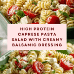 This Delicious High Protein Caprese Pasta Salad combines creamy mozzarella, fresh basil, and tangy balsamic dressing for a nutritious and flavorful meal. It’s perfect for a light lunch or a vibrant side dish, packed with protein and fresh ingredients.