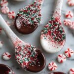 Create festive and delicious DIY Peppermint Candy Spoons perfect for holiday treats and drinks. These candy spoons are made by melting crushed starlight peppermints into spoon molds, optionally dipped in melted chocolate and sprinkles for a colorful and tasty finish.