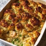 Store leftovers in an airtight container in the refrigerator for up to 3 days. To reheat, cover the casserole with foil and warm in a 350°F (175°C) oven for about 15-20 minutes or until heated through. Avoid microwaving to keep the stuffing crisp.