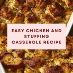 Dolly’s Chicken and Stuffing Casserole is a comforting and hearty dish featuring tender shredded chicken mixed with creamy sour cream and cheddar, topped with a buttery, flavorful stuffing crust. Perfect for family dinners, this casserole offers a deliciously cheesy, savory meal baked to a golden brown perfection.